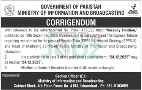 The positions are based in Karachi, offering a great opportunity for professionals to contribute to the Ministry of Information. Candidates with relevant qualifications and experience are encouraged to apply. Below are some highlights: