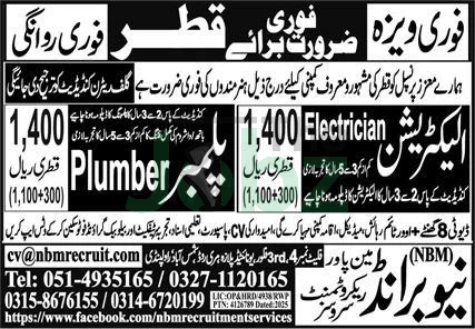 As a plumber or electrician in Qatar, your duties may include: