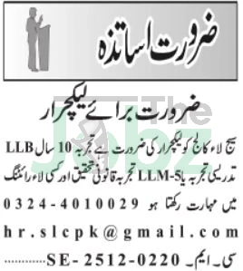 Sage Law College Lahore is inviting applications for Lecturer positions in 2026. This is a fantastic opportunity for legal professionals and educators to contribute to one of the leading law institutions in Pakistan. If you have a passion for teaching and a strong background in law, this role is perfect for you.